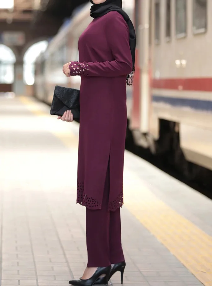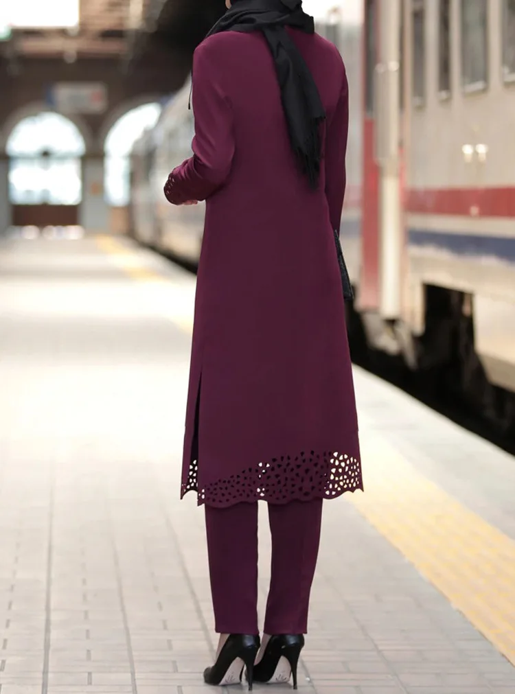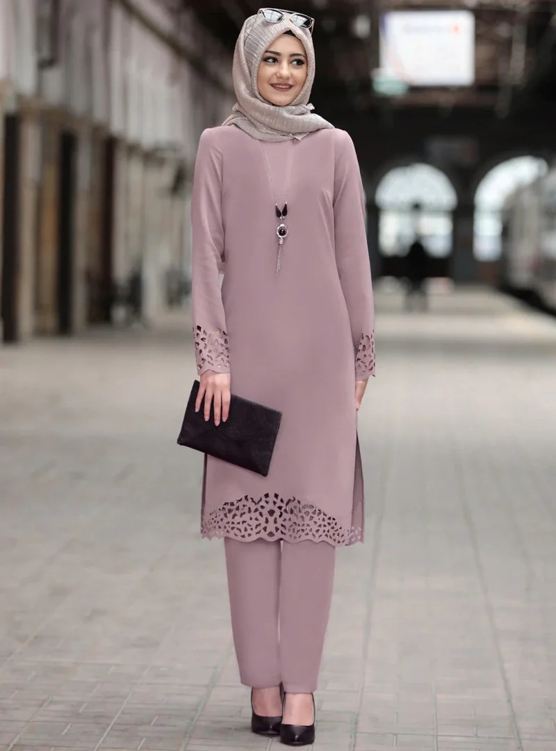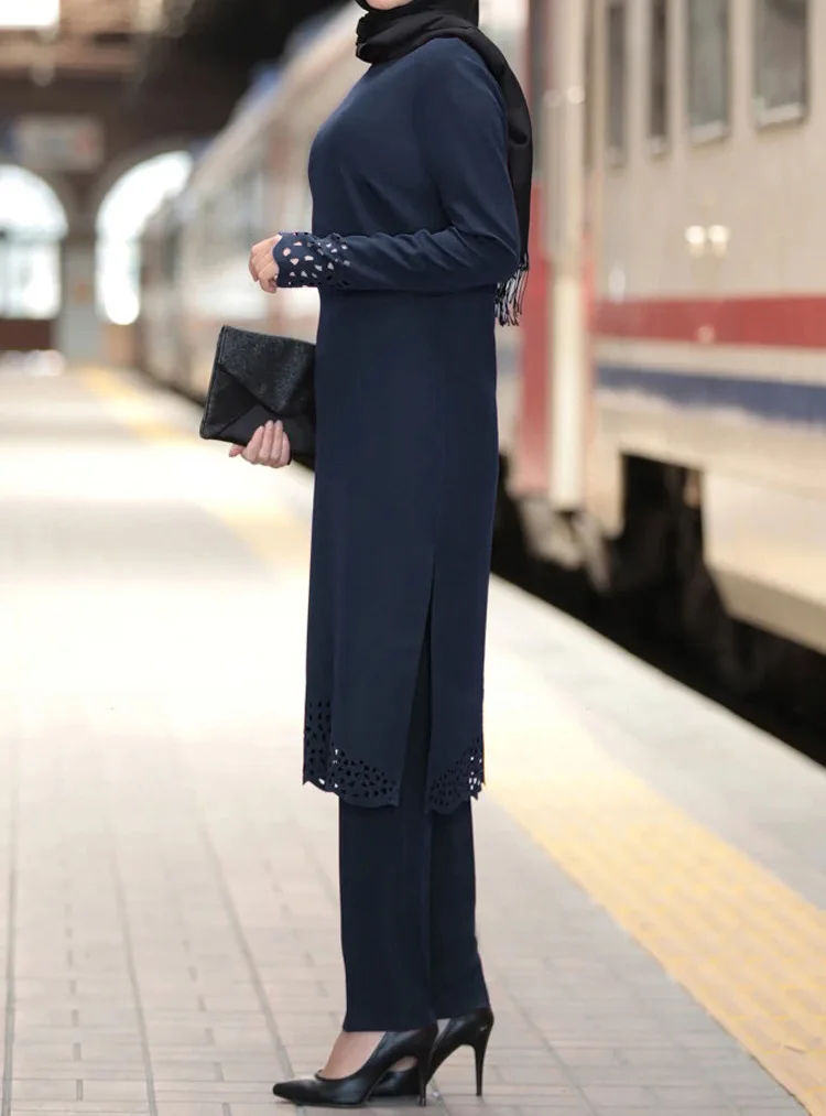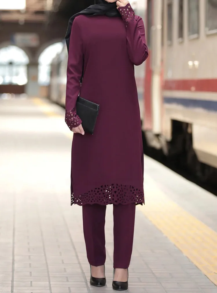 2020 Chiffon Muslim Women Hollow Out Long Tops Islamic Sets Women Muslim Pants Moroccan Kaftan Abaya Ramadan Prayer Clothes
