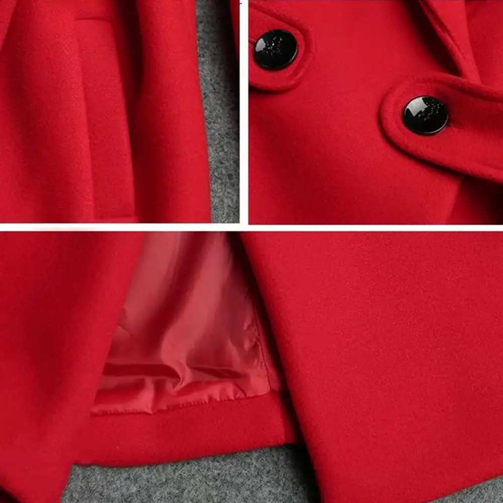 Features a suit collar design, double buttons, two side pockets, and a belt for a simple and fashionable look.