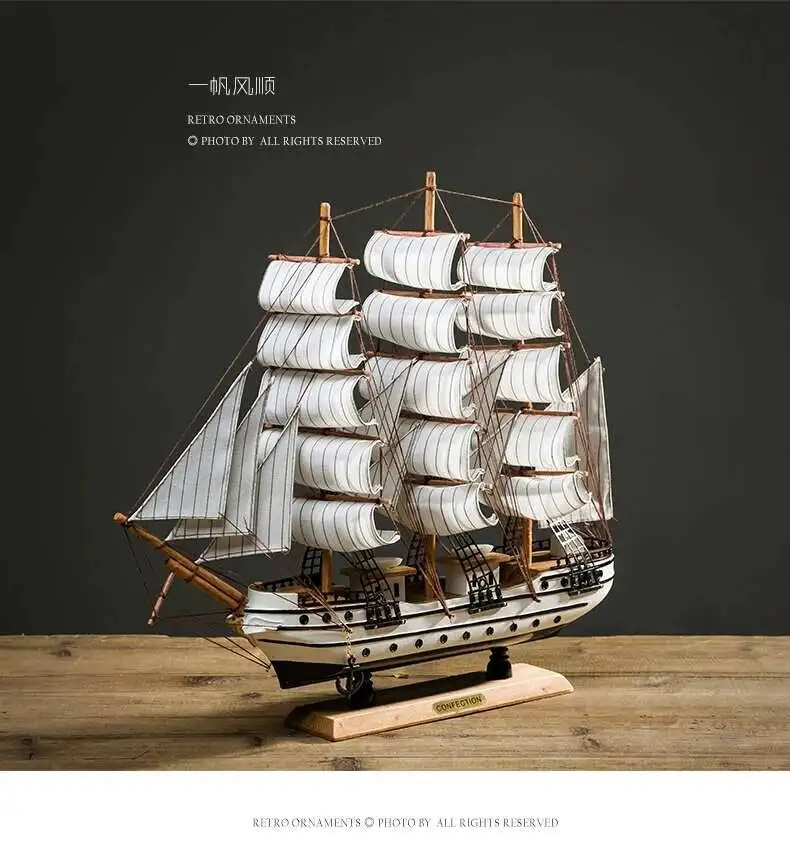 Lifelike Miniature Wooden Pirate Saig Ship Model Marine Decoration Accessories Modern Arts Office Home Decor Souvenirs