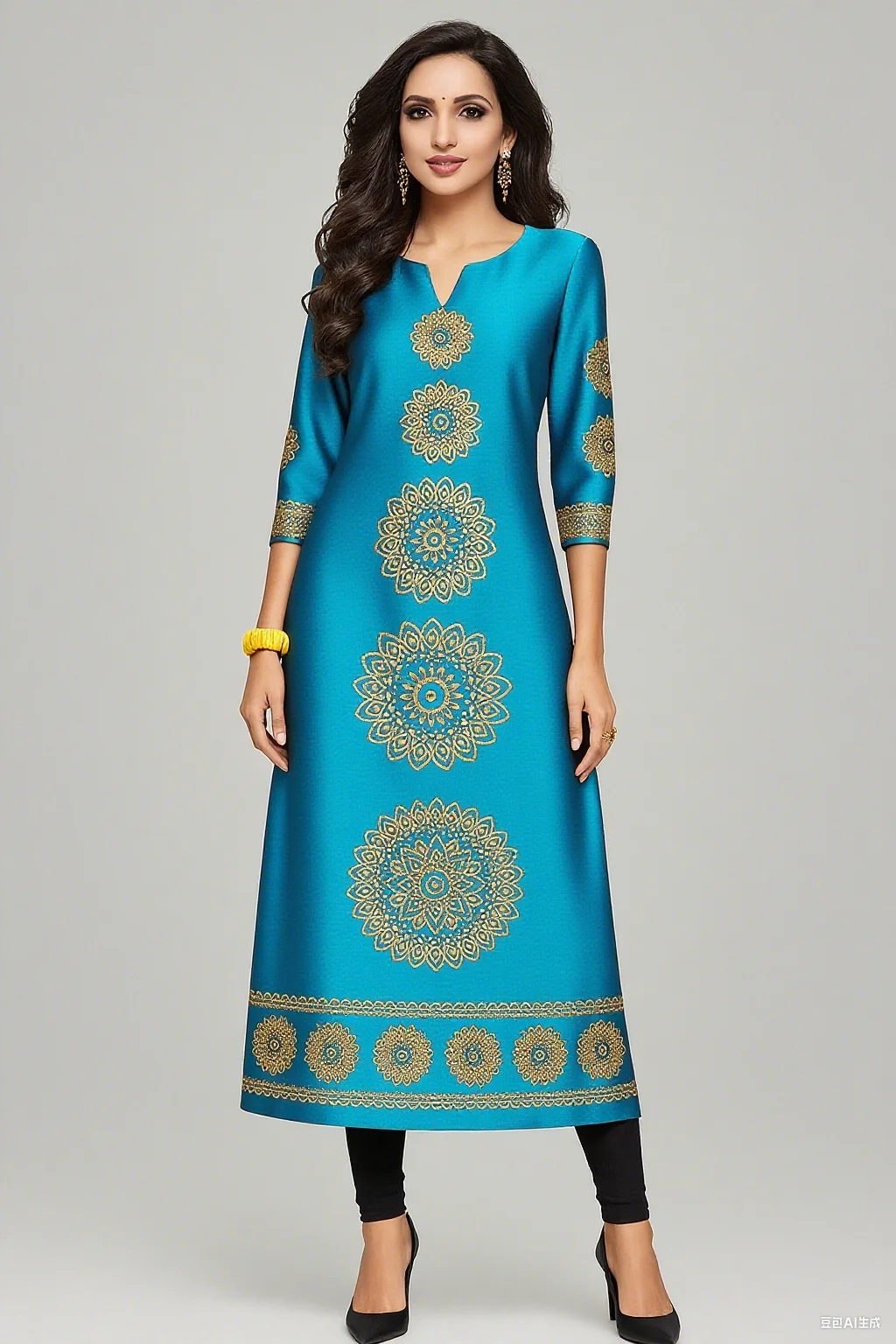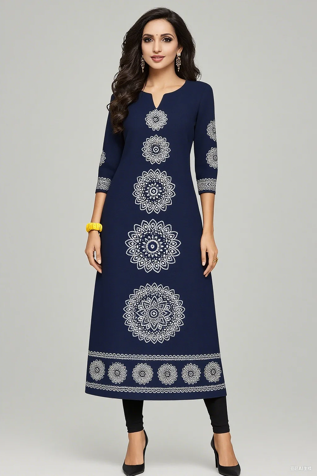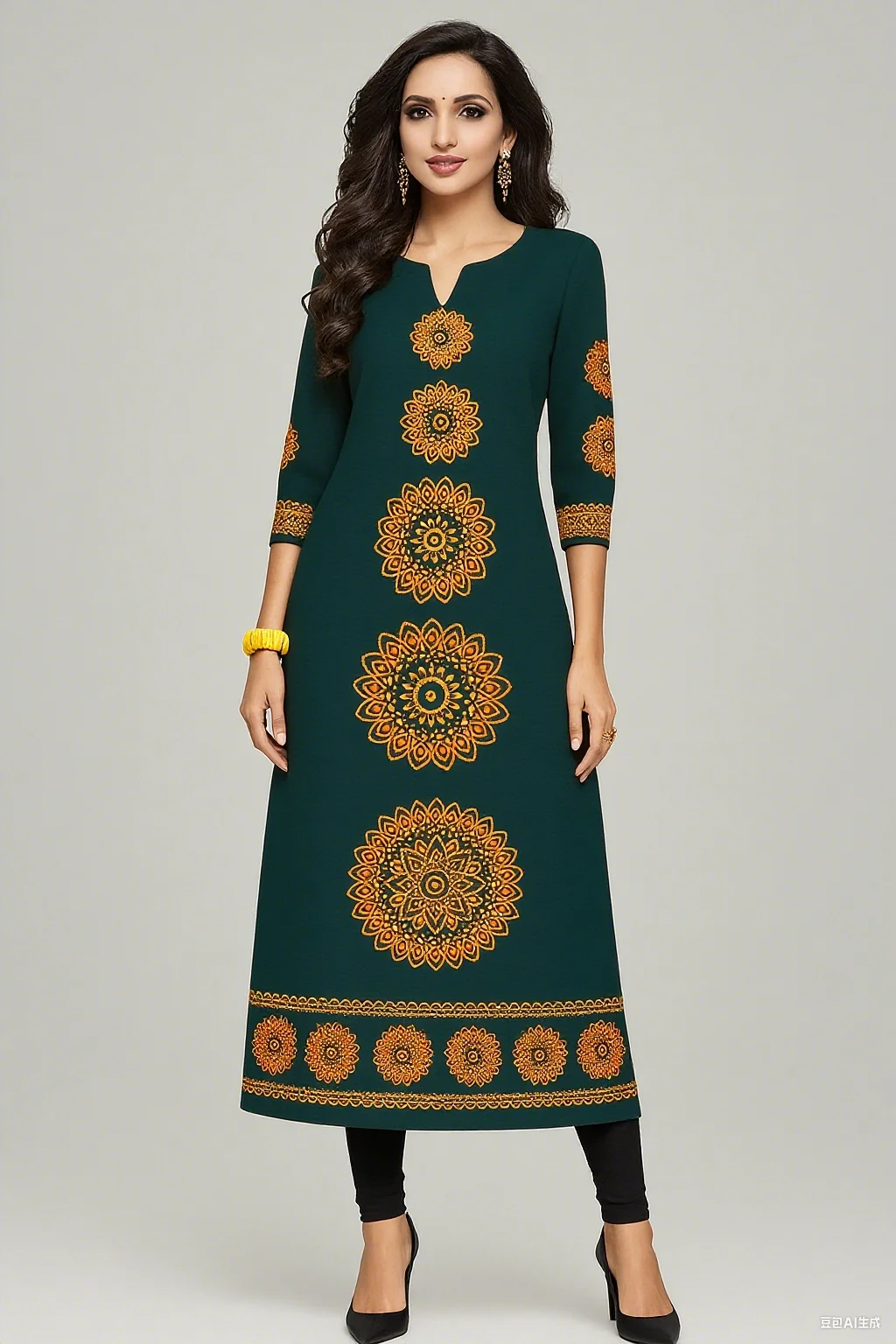 Muslim 2026 Dress Kurt Women's Fashionable And Elegant Long Sleeved Straight Tube Casual Round Neck Colorful Pattern Noble Skirt