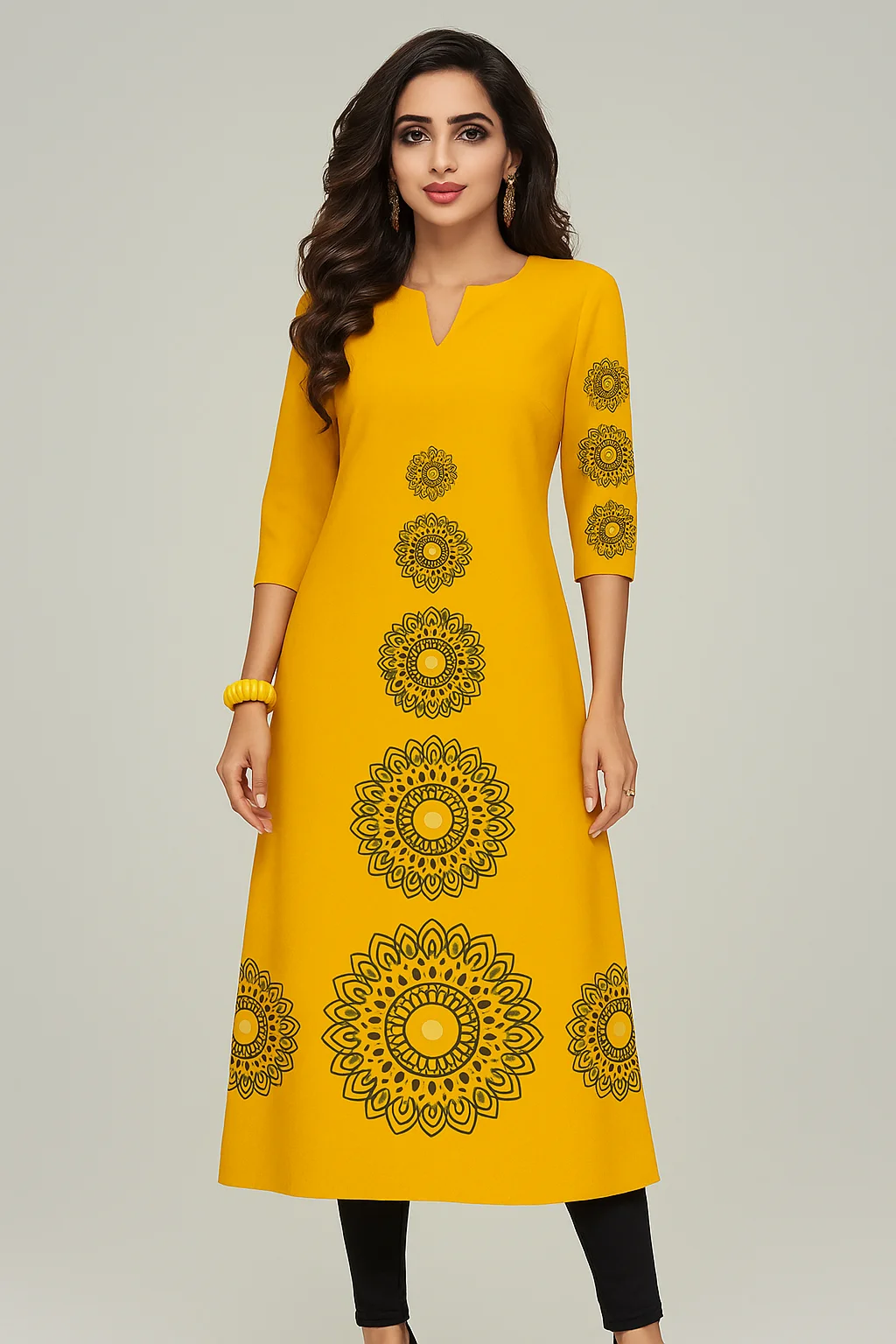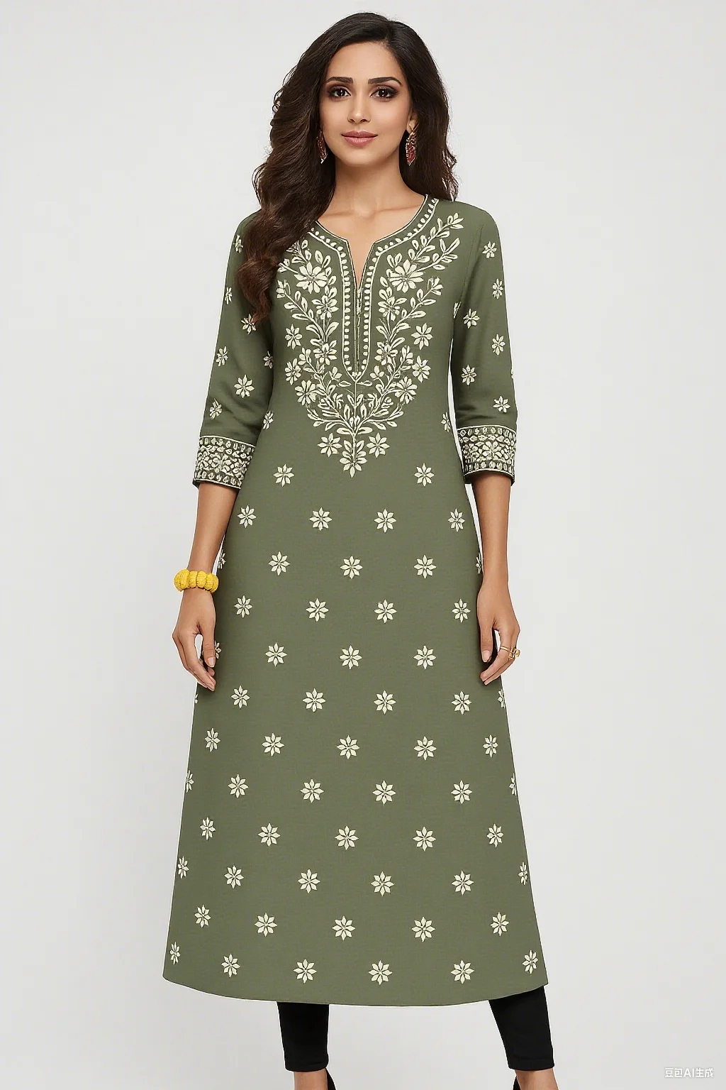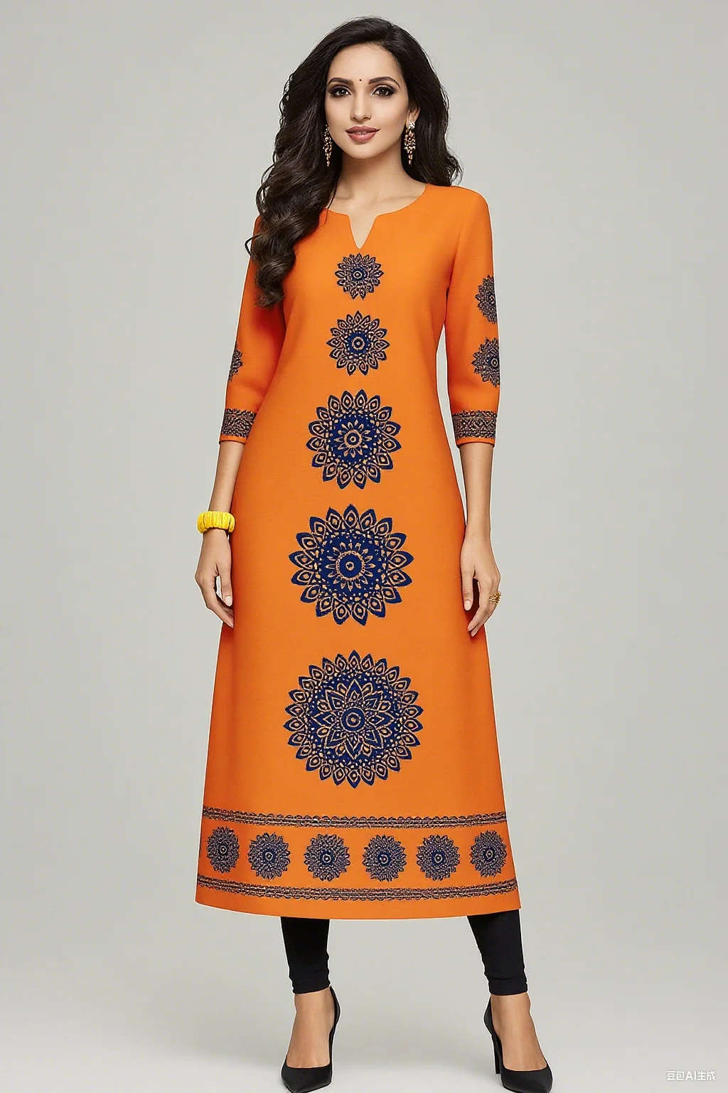 Muslim 2026 Dress Kurt Women's Fashionable And Elegant Long Sleeved Straight Tube Casual Round Neck Colorful Pattern Noble Skirt